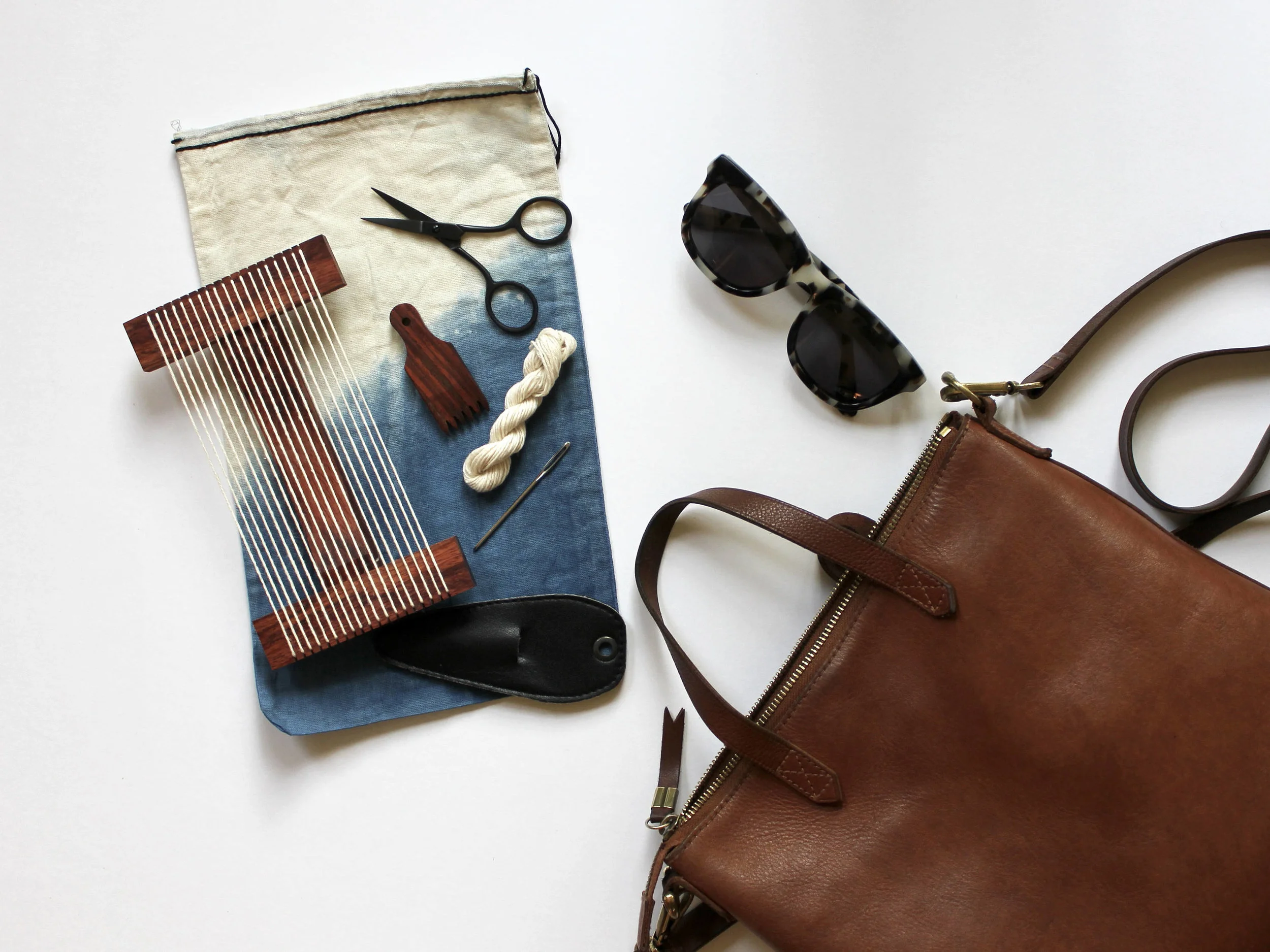 Naturally Dyed Weaving Yarn Pack with Indigo Drawstring Bag: Earth Tones Colorway