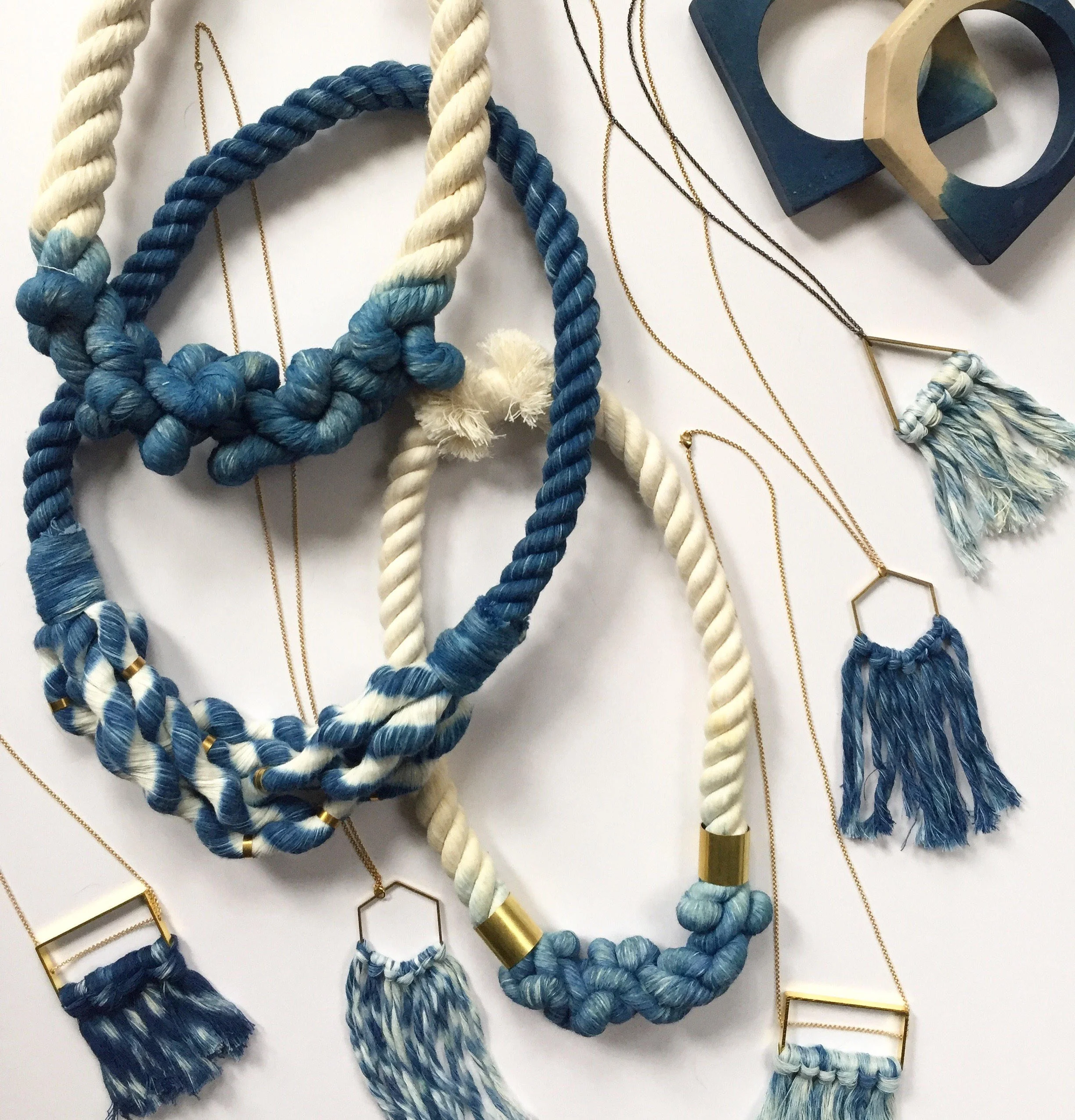 Indigo No. 3: Twisted Fiber Rope Necklace with Brass Details