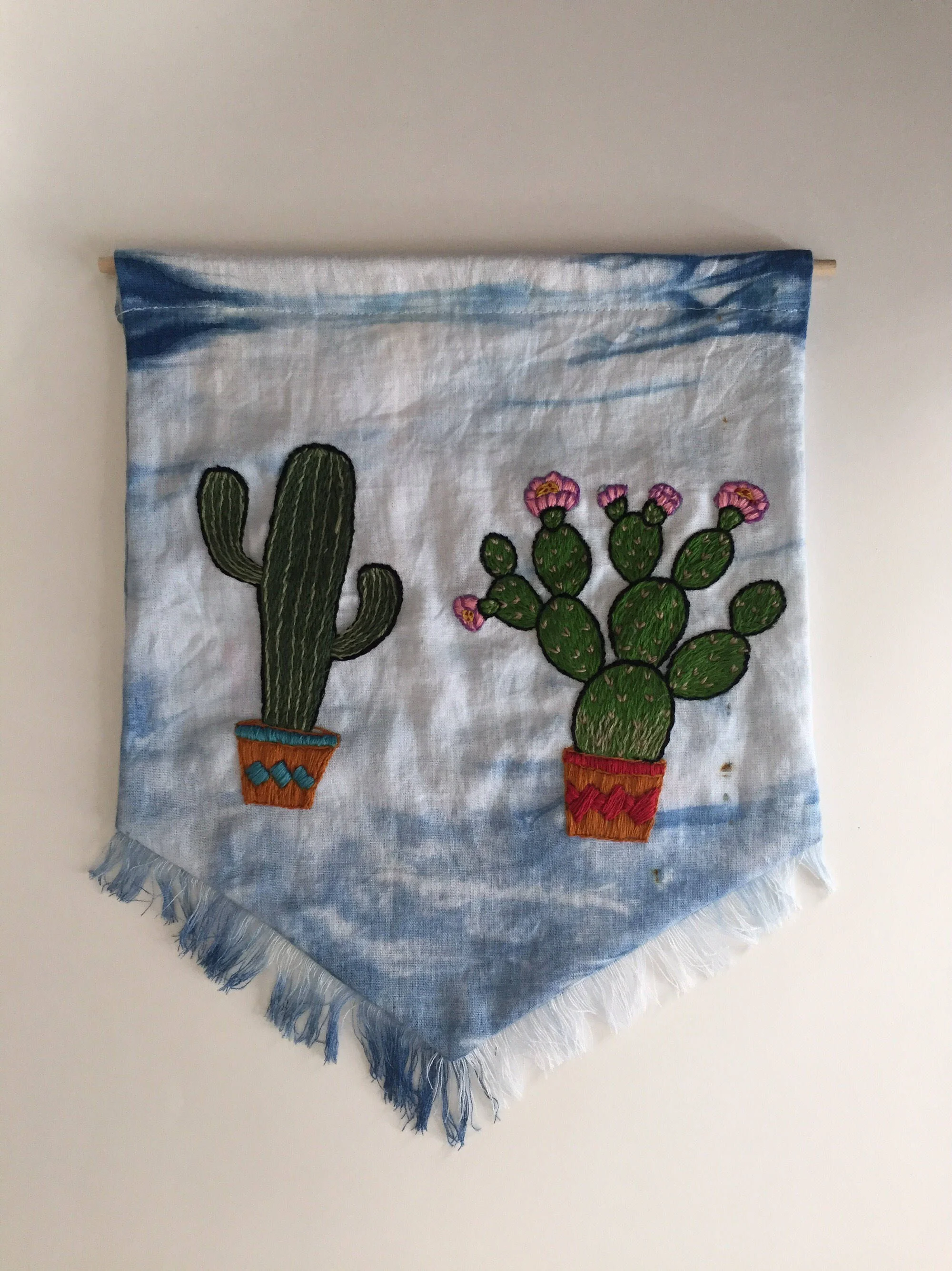 SALE* Shibori Indigo Fiber Fringe Necklace on Brass Triangle