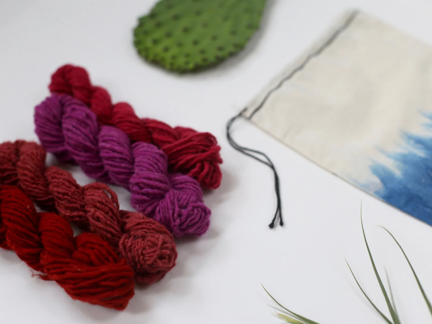Naturally Dyed Weaving Yarn Pack w/ Indigo Drawstring Bag: Vibrant Reds Colorway