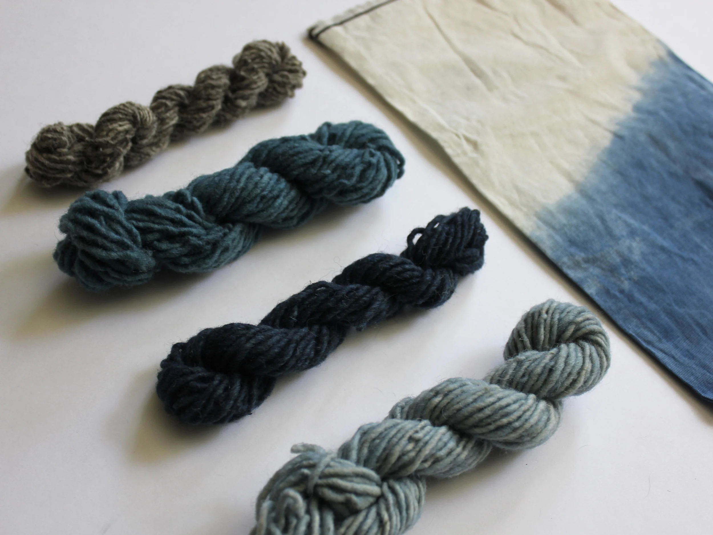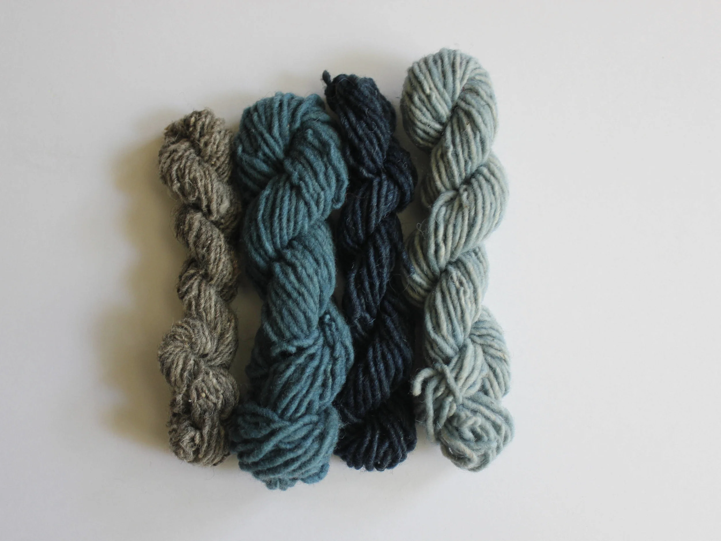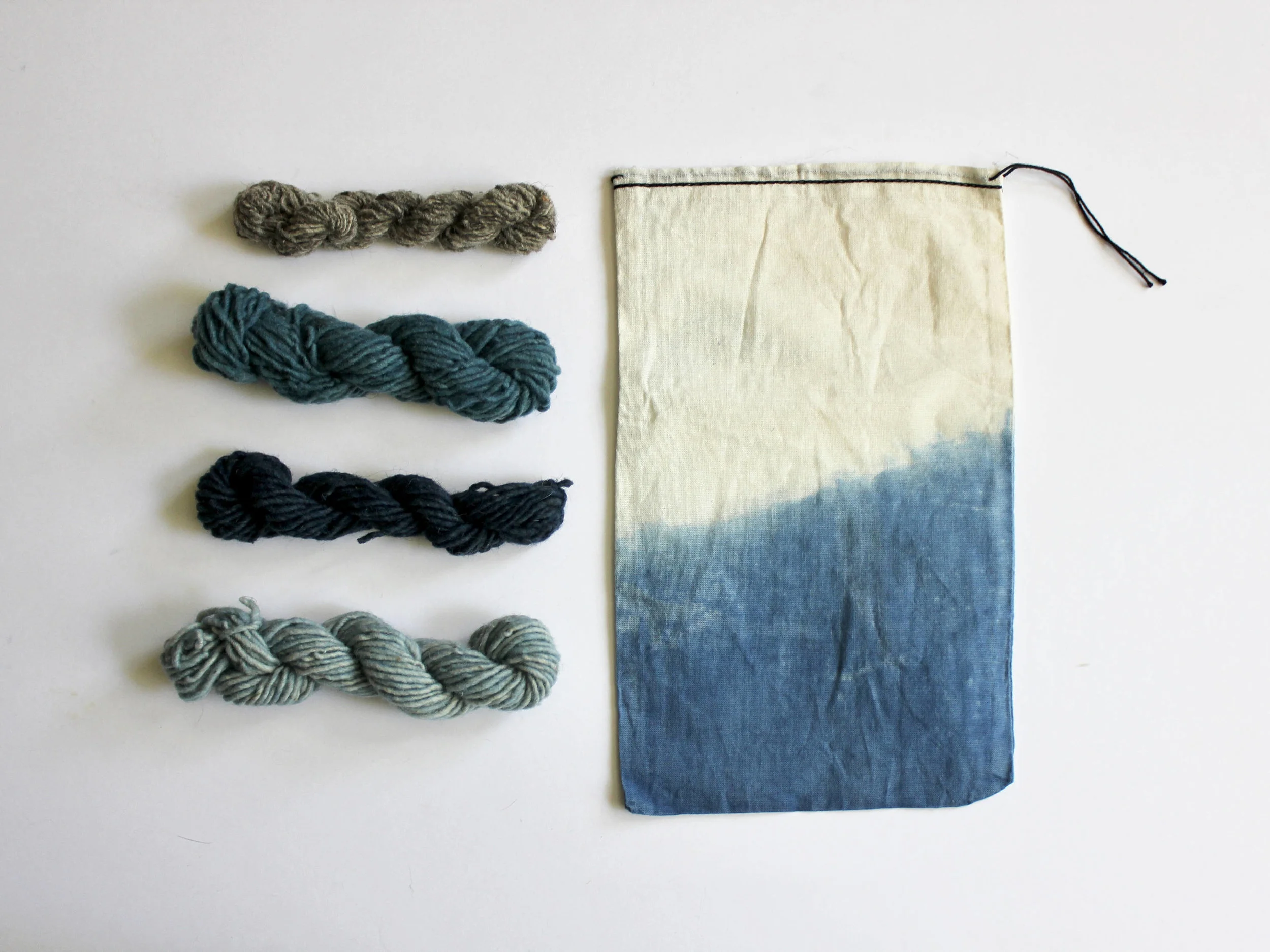 Naturally Dyed Weaving Yarn Pack with Indigo Drawstring Bag: Indigo Blues Colorway
