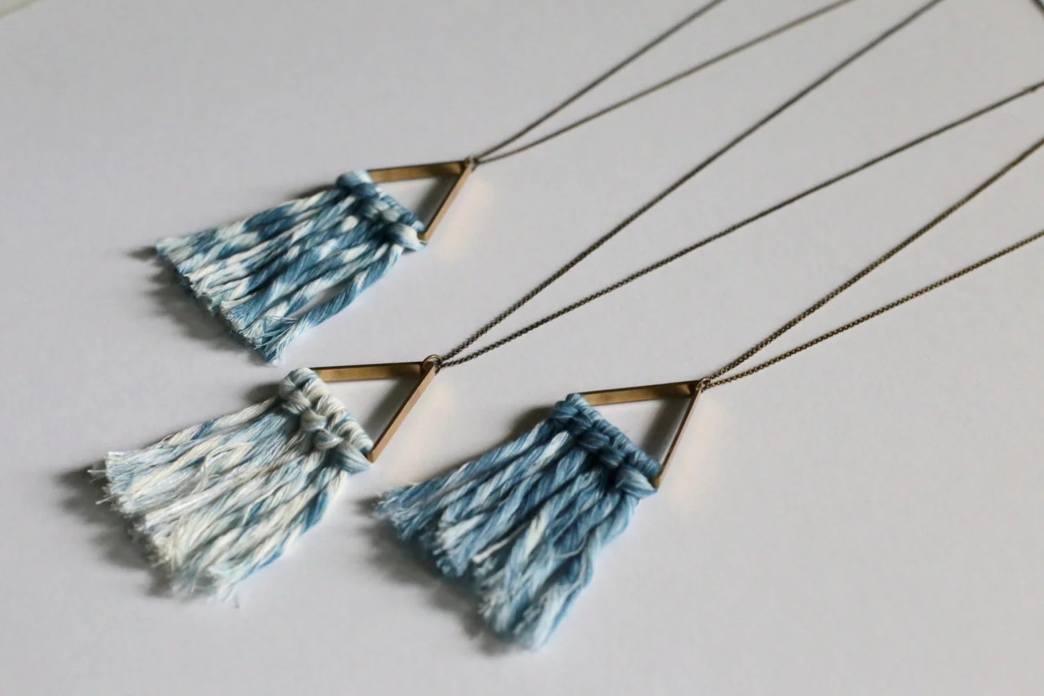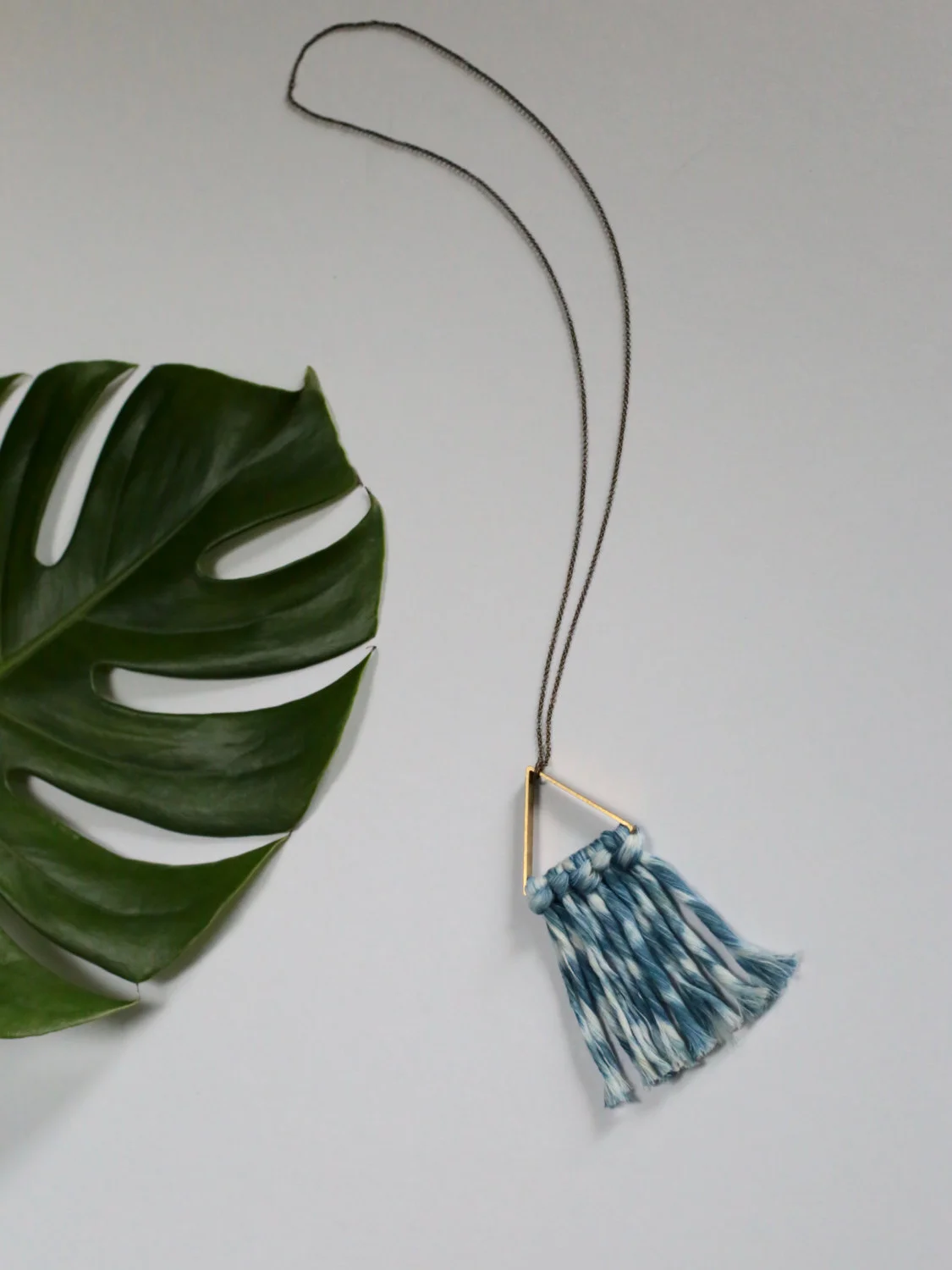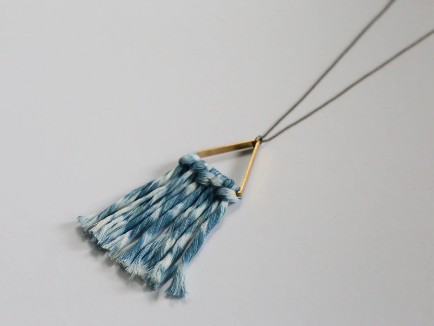 SALE* Shibori Indigo Fiber Fringe Necklace on Brass Triangle